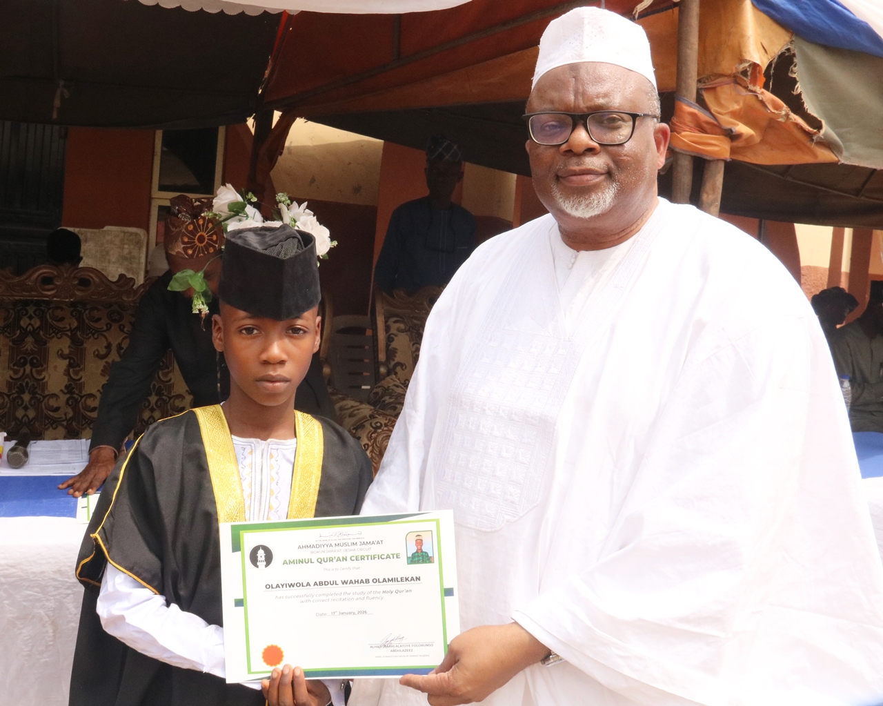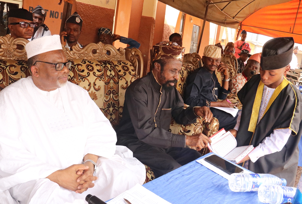 The Amir (National Head) of the Ahmadiyya Muslim Jama’at of Nigeria, Alhaji (Barrister) Alatoye Folorunso Azeez, alongside other top dignitaries of the Jamaat, attended the 2025 Aminul Qur’an programme, a celebration of excellence in the reading and pronunciation of the Holy Qur’an, organised by the Ibokun Branch of the Ahmadiyya Muslim Community, Ijesha Circuit, Osun State.