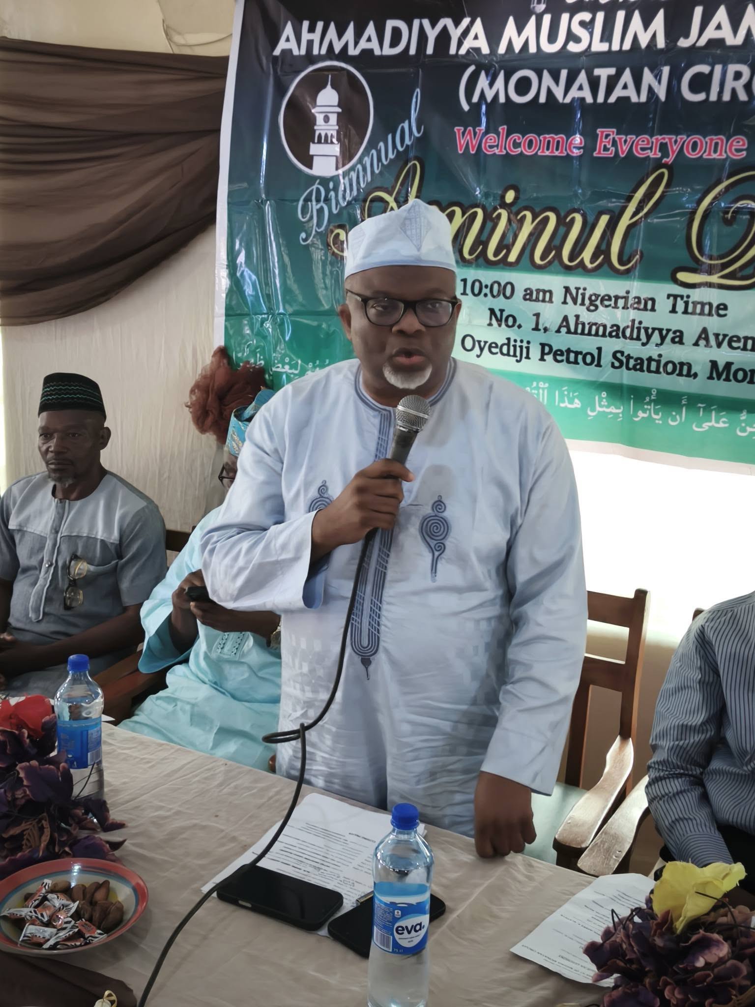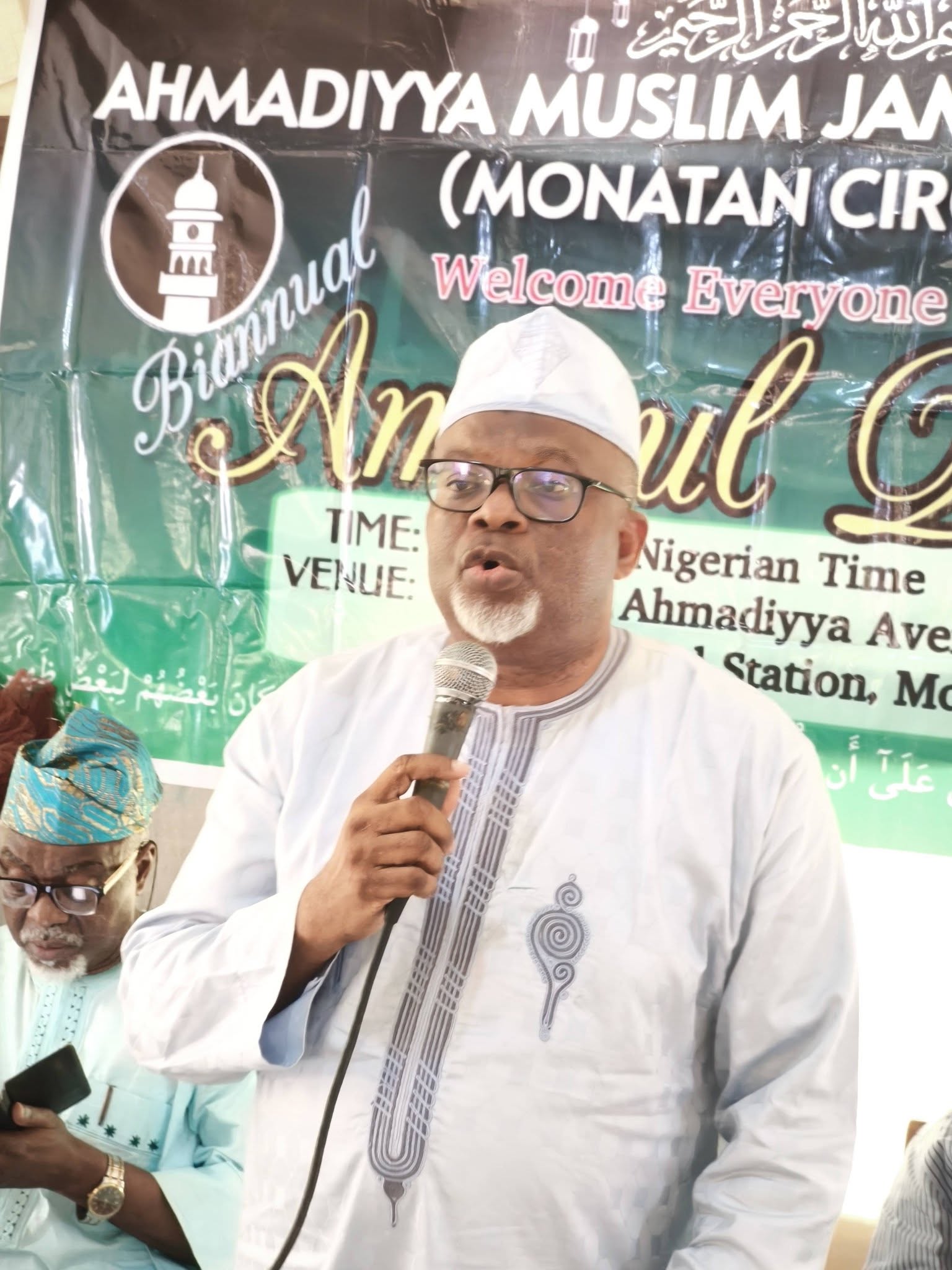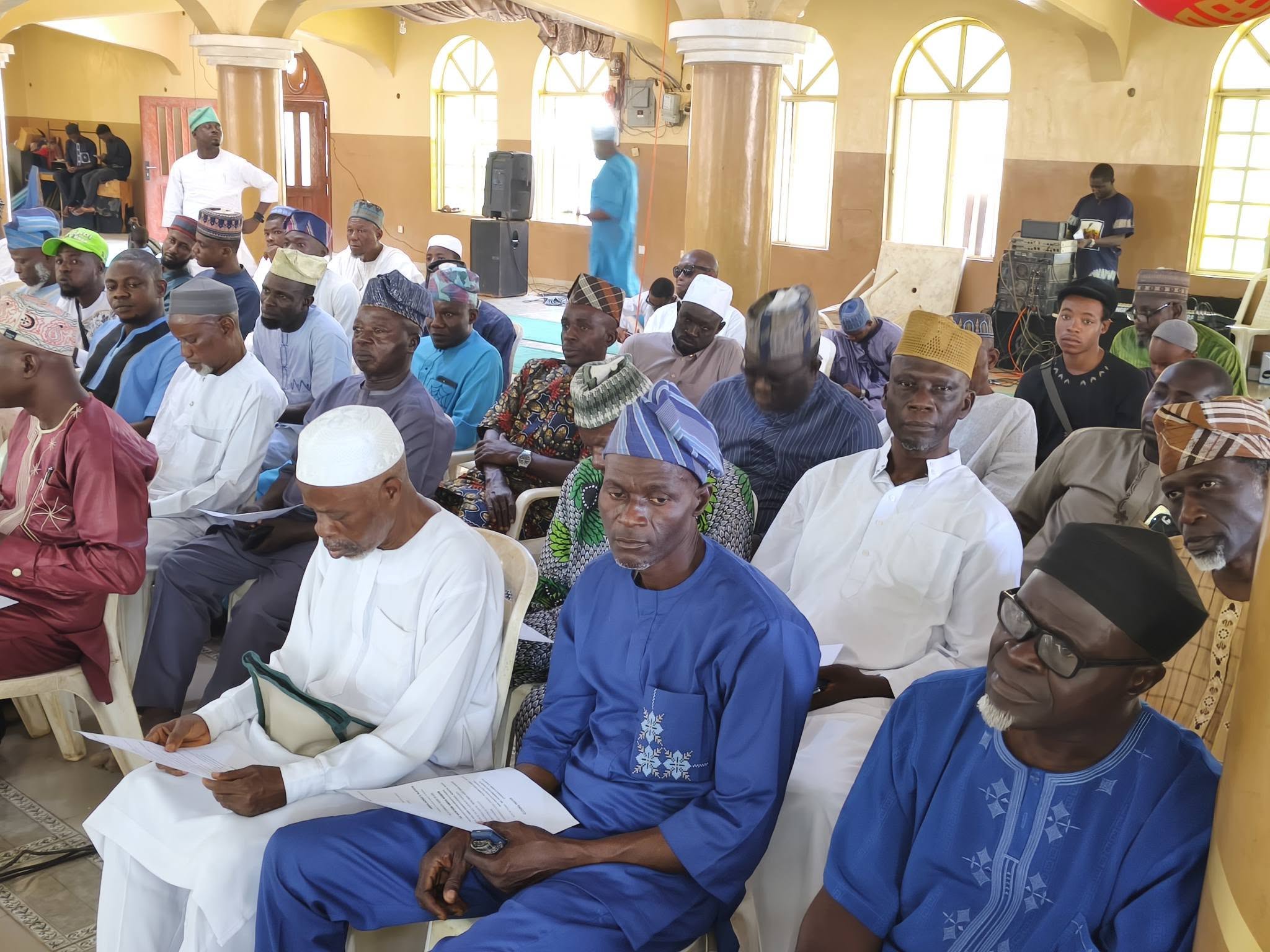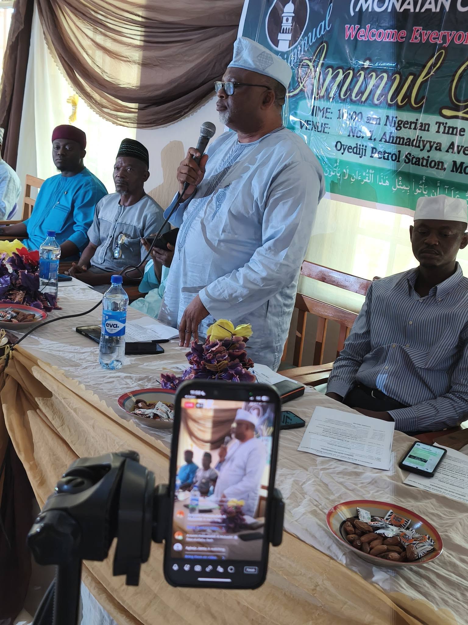The Amir sahib arrived with a distinguished entourage that added weight and honour to the occasion. With him were the Naib Amir (Finance and Administration), Alh. Mufadil Bankole sahib; the General Secretary, Alh. AbdulJabbar Ayelaagbe sahib; the Vice Chancellor of Minaret University, Ikirun, Prof. Abdur Rahman Oladele Abdullah sahib; the Assistant General Secretaries, Bro. Nurudeen Akinreti sahib and Bro. Sodiq Aremu sahib; and the Guest Lecturer, Ustadh Abdur Roqib Akinyemi sahib.