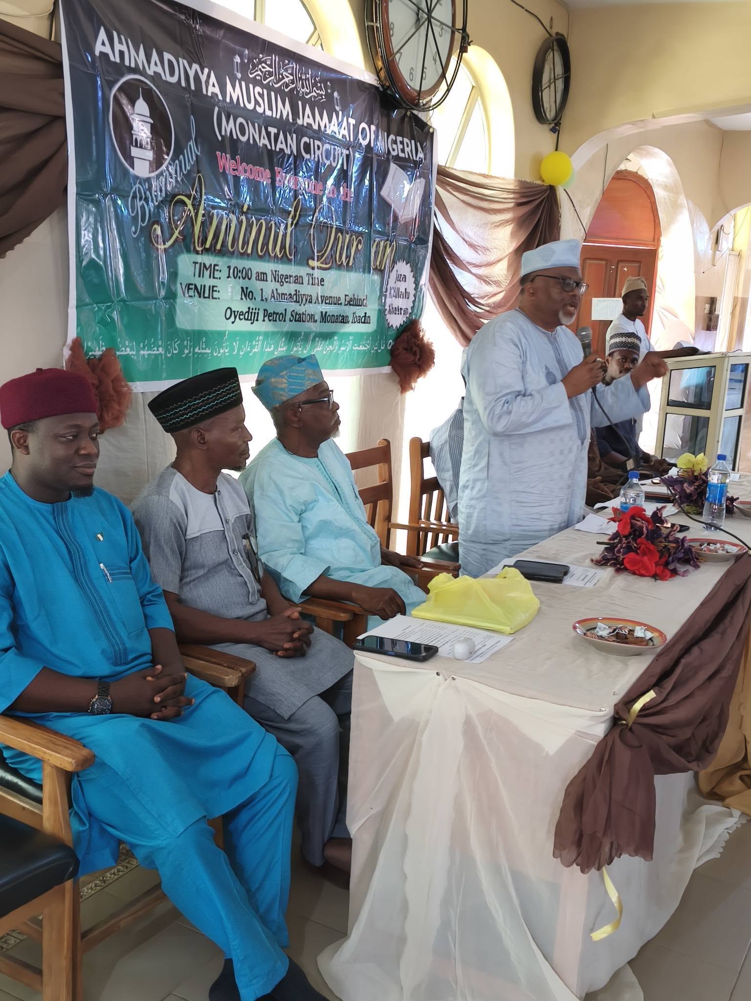 The Respected Amir sahib and his delegation were warmly received by the hosts, led by the Circuit President, Alh. Hammed, alongside the Central Maulvi for Akinyele and Monatan Circuits, Maulvi Shamsudeen Ojo sahib, Al-Haafidh AbdulGaniyy Shobambi, and other notable personalities within the Circuit.